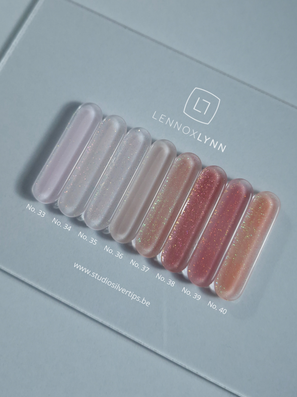 Builder in a bottle van Lennox Lynn heeft een flexibele structuur en kan je zowel op de natuurlijke nagel of met upperforms aanbrengen. Werk met builder in a bottle op een strijklaagje rubberbase clear als basis van de manicure voorbereiding.