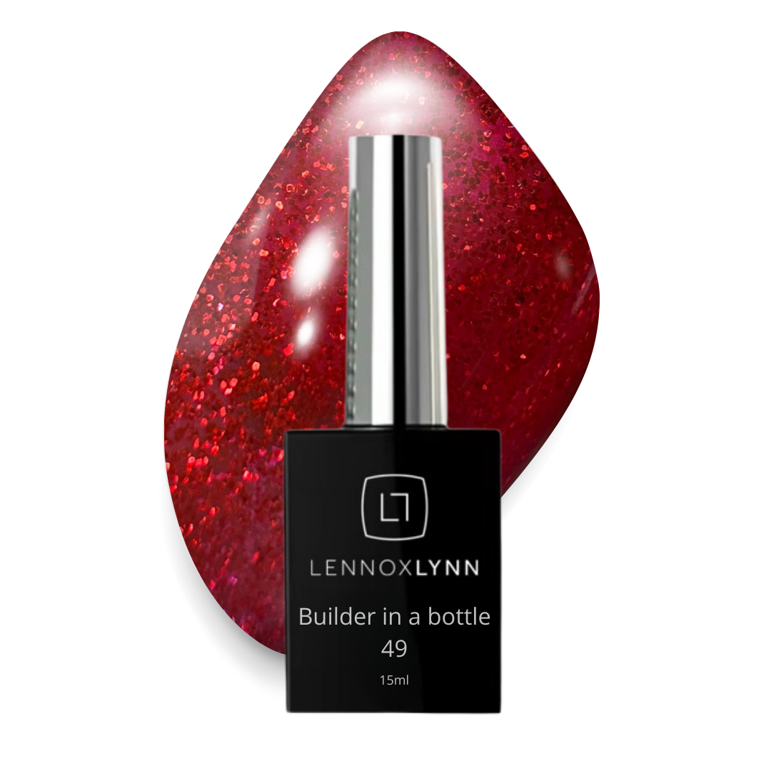 Builder in a bottle van Lennox Lynn heeft een flexibele structuur en kan je zowel op de natuurlijke nagel of met upperforms aanbrengen. Werk met builder in a bottle op een strijklaagje rubberbase clear als basis van de manicure voorbereiding.